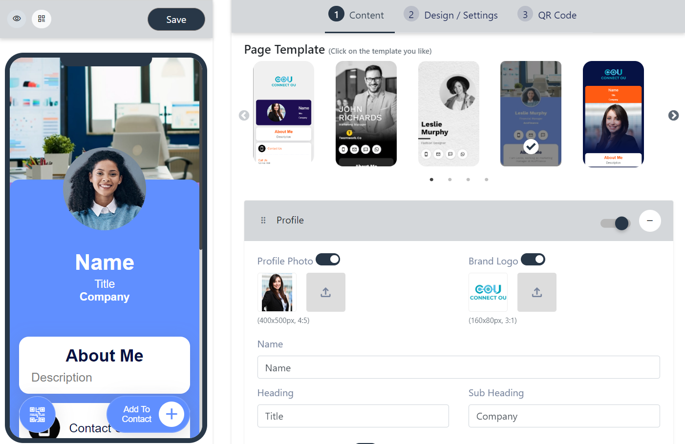 We empower users to craft their own digital brand hub effortlessly in just 4 simple steps. Customize your hub with dynamic content, social media links, and a QR code for seamless sharing. Update your details anytime and choose from a variety of dynamic themes to make a lasting impression